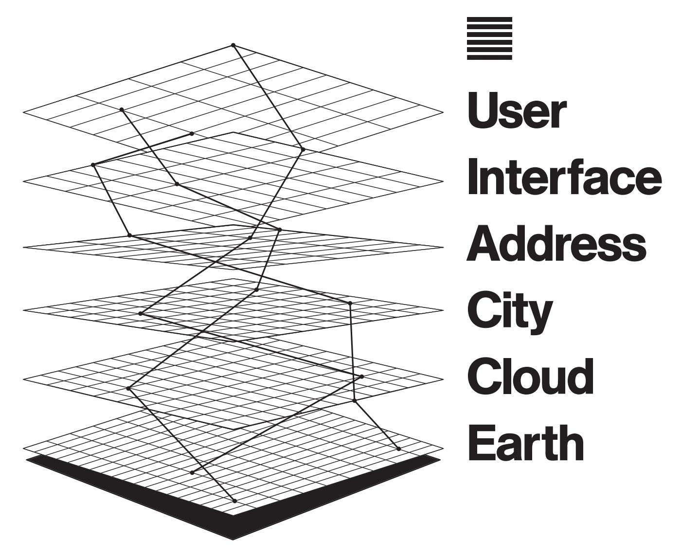 How does this work? What is the model exactly? The Stack is divided into six layers, moving from the global to the local, from geochemical up to the phenomenological: Earth, Cloud, City, Address, Interface, and User. For The Stack, multiple layers co-occupy the same terrestrial location (horizontally) but gather and subdivide their processes vertically into discrete machinic " jurisdictions. "That subdivisional geography is bound within the mechanism of the platform, but at the same time, The Stack platform itself disturbs existing models of jurisdiction and projects its own out into the world. Each layer configures and coheres its own specific forms of governance over what it touches, and so the difference between one layer and another is also a difference between those forms and processes. That is, the Cloud layer is defined by certain spatial and temporal demands that include what we conventionally recognize as Cloud infrastructure (e.g., data centers, fiber optics, and in-browser applications), but those demands may press on rather unlike things as well (parking spaces, medical equipment, food supply statistics). The six chapters that follow discuss each one of these layers in sequence, detailing especially how each produces its own governing logics of scale, physicality, textuality, embodiment, force, motion, stability, and, perhaps most important, how each of these logics provides productive accidents that may direct us toward unexpected design outcomes.