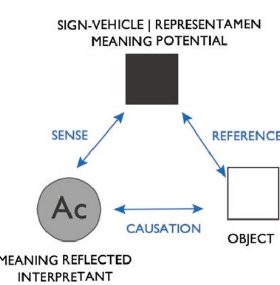 with Firstness) to change the interpretant (what we associate with– icon, quality given to the object, Thirdness). The title Fountain changes the denotation when used to represent a urinal, in this case, changing how the spectator perceives the objects being re-presented by Duchamp. Removing the object from its context and attributing a new name (representamen*),* Duchamp "altered the object's identity and value" (Stile and Selz 1997, p. 804) offering to the spectator a new representation (interpretant). Just like Peirce's semeiosis, Duchamp's interplay of object, representation, and meaning is not static. Once the spectator starts to perceive the object with a new meaning, this object becomes an object d'art (representamen) with endless possible representations (interpretants) (Chandler 2007, p. 31; Cobley and Jansz 2012, p. 25, Zics (2014, n.p.). This semiotic dance re"ects Umberto Eco's (1989) open artwork—Semiotic Openness—which presents the concept of the active spectator and as such a multiple semiotic creation process yielding the possibility of multiple meanings, the possibility of in!nite relationships between spectator, artwork, and artist (see Fig. 10.5).
