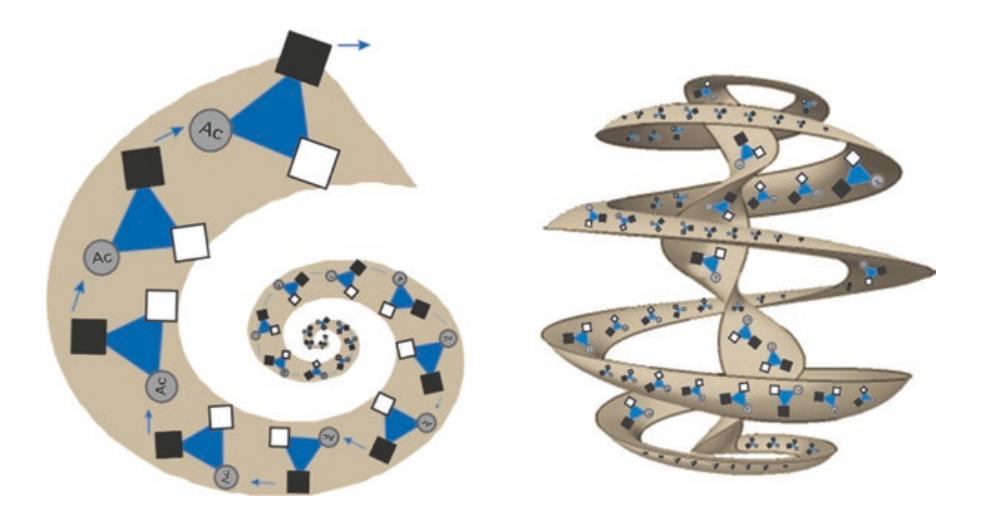 Fig. 10. 5 Semiotic Dance visualization where artist and spectator become co-creators of meaning. The unlimited semiosis interplay re"ects a mobius spiral in constant change yet circumscribed by the user. Left, top view; right vertical view