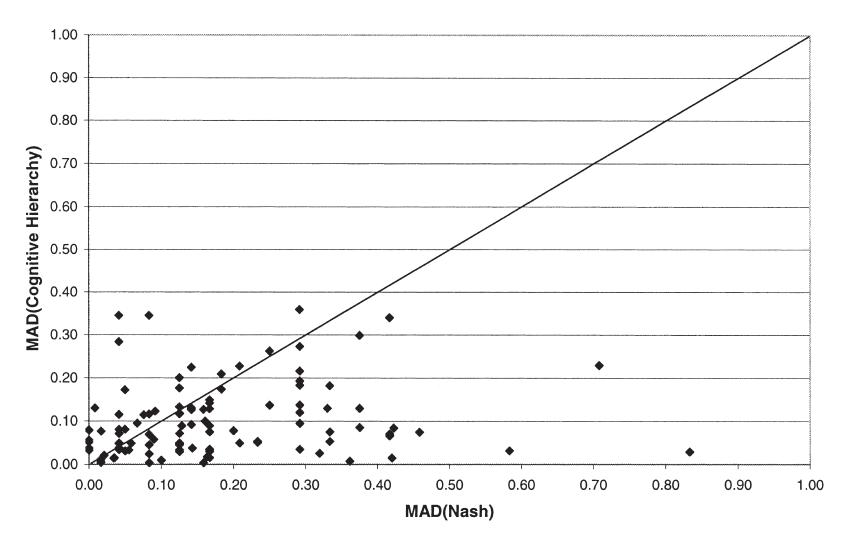 in some games.5 Assuming that players respond stochastically instead of best-responding is obviously a plausible alternative too, but requires an extra parameter and generally improves fit only a little in most games we have studied.