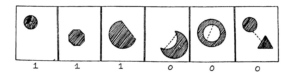 - The idea of thinking of classes of geometrical objects (or programs that define or recognize them) as classes of /i-dimensional vectors (of|, ... , a") loses the geometric individuality of the patterns and leads only to a theory that can do little more than count the number of predicates in *L(^)* This kind of imagery has become traditional among those who think about pattern recognition along lines suggested by classical statistical theories. As a result not many people seem to have observed or suspected that there might be particular meaningful and intuitively simple predicates that belong to no practically realizable set L(^). We will extend our analysis of ^ connect ed to show how deep this problem can be. At the same time we will show that certain predicates which might intuitively seem to be difficult for these devices can, in fact, be recognized by low-order perceptrons: ^ convex already illustrates this possibility.