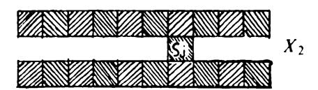 where we have grouped the v?'s according to whether their support sets lie near the left, right, or neither end of the figures. Then for Xoo the total sum must be negative. In changing Xoo to Xxo only 2 group I is affected, and its value must increase enough to make the