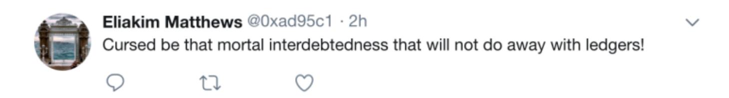 Armstrong, "you did not discover them in a nascent state in some blockchain, you called them up from that vile book!"