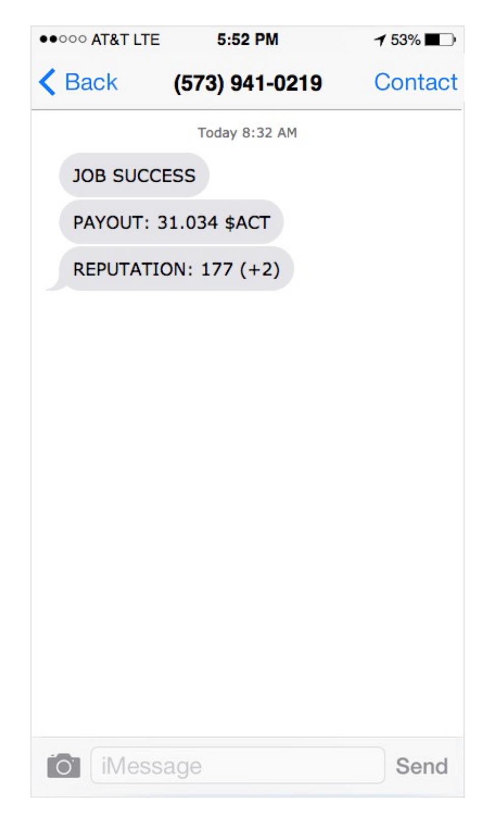 Still, there is something addictive about the feedback loop of getting a contract, fulfilling it, and watching my wallet get an anonymous transfer. The immediacy and the tangibility of it are very satisfying. It's like making money: the video game. A direct feedback loop with a variable payout is all it takes to turn a moment of reward into a habit. You get a little receipt after each fulfillment.